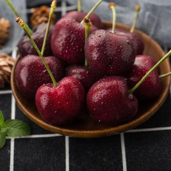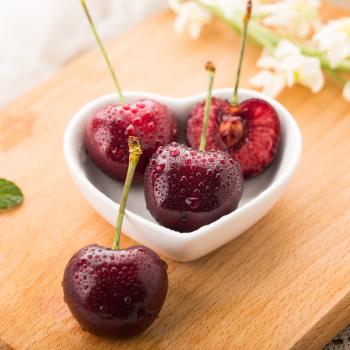 车厘子,别名又叫大樱桃、含桃、荆桃等,是上市最早的一种乔木果实,号称“百果第一枝”。据说黄莺特别喜好啄食这种果子,因而又名为“莺桃”。其果实虽小如珍珠,但色泽红艳光洁,玲珑如玛瑙宝石一般,味道甘甜其中带有一丝酸味,既可鲜食,又可腌制或作为其他菜肴食品的点缀。